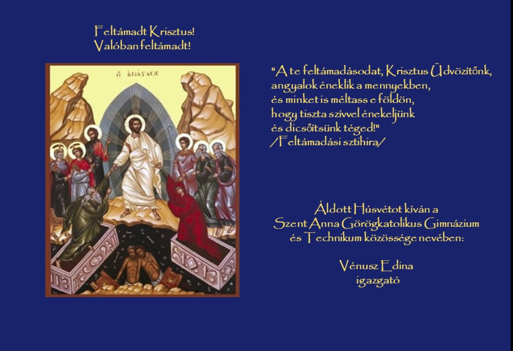 2024 március 20-án megtartottuk tavaszi iskolánk tavaszi lelki napját. A napunk tematikája a feltámadás ünnepére, a Húsvétra koncentrálódott. 13 osztályban 13 lelki vezető készítette diákjainkat a szent nagy napra.